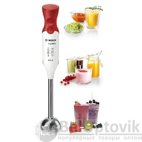 Погружной блендер BOSCH MSM64110 – идеальный помощник на кухне. Благодаря мощности 450 Вт и двум скоростям он легко справится с измельчением, смешиванием и приготовлением смузи.