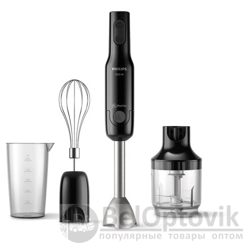Блендер погружной PHILIPS HR2543/90, 700 Вт, 2 скорости, 3 насадки, стакан, черный