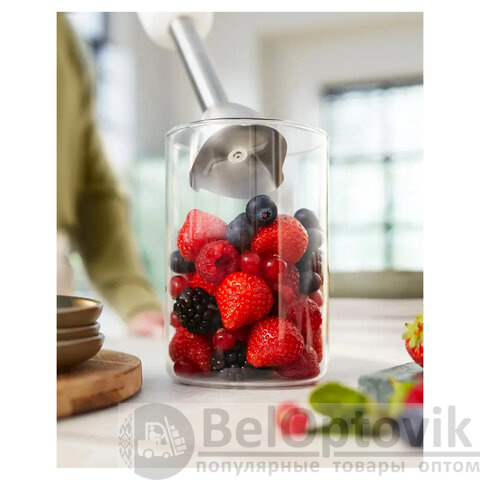 Насадка, предотвращающая разбрызгивание. Особая волнообразная форма нижней части погружной насадки блендера защищает от разбрызгивания во время приготовления блюд, оставляя рабочую поверхность чистой.