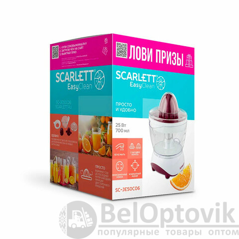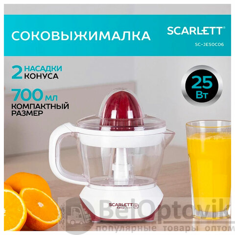 Соковыжималка SCARLETT SC-JE50C06 для цитрусовых разных размеров – это компактное, простое и удобное в использовании устройство, предназначенное для приготовления свежего сока из апельсинов, лимонов и других цитрусовых фруктов.