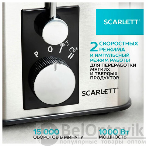 Соковыжималка SCARLETT SC-JE50S53, 1000 Вт, стакан 0,6 л, емкость жмыха 1 л, пластик, сталь/черный