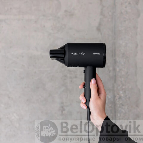 Фен SCARLETT SC-HD70I37, 1900 Вт, 2 скорости, 3 температурных режима, ионизация, черный