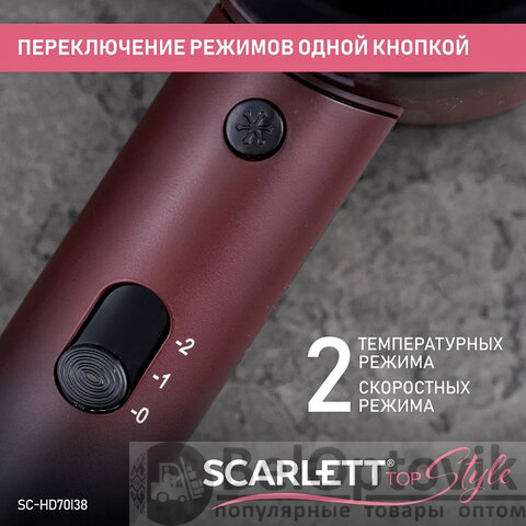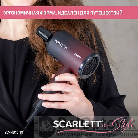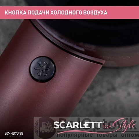 Стильное цветовое решение и мощный поток воздуха – все это фен SC-HD70I38 линейки SCARLETT Top Style.