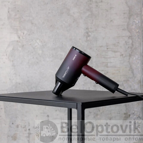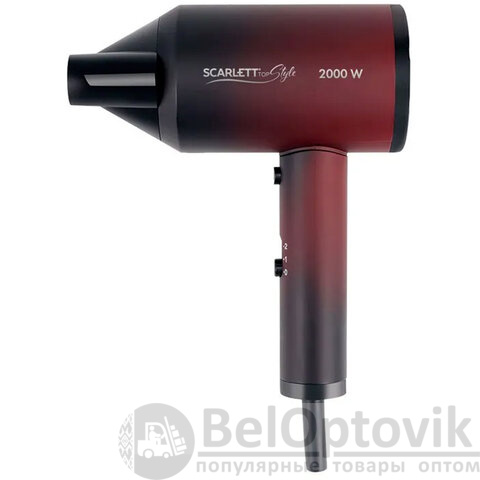 Фен SCARLETT SC-HD70I38, 2000 Вт, 2 скорости, 3 температурных режима, ионизация, черный/бордовый