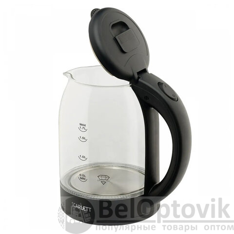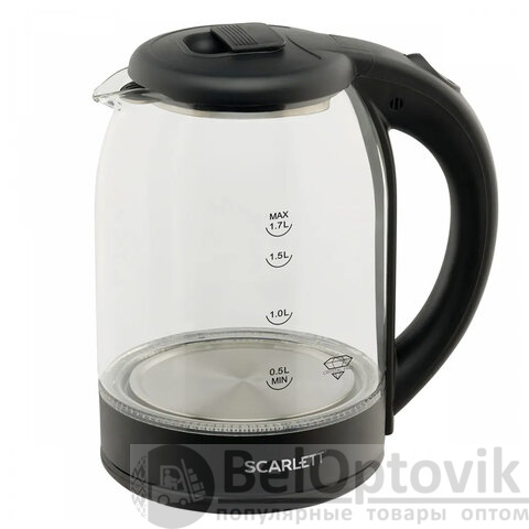 Чайник SCARLETT SC-EK27G90, 1,7 л, 1800 Вт, закрытый нагревательный элемент, стекло, черный
