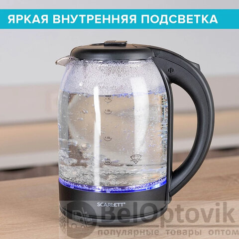 Электрический чайник SCARLETT SC-EK27G90 - это идеальное сочетание стиля, функциональности и качества. Благодаря своему элегантному дизайну и внутренней подсветке он станет ярким акцентом на вашей кухне.