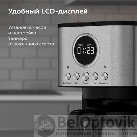 Удобные часы и таймер отложенного старта помогут вам заранее запланировать время заваривания, чтобы насладиться свежеприготовленным кофе прямо с утра.
