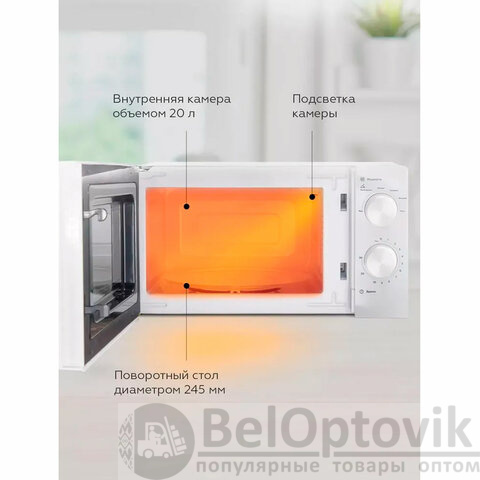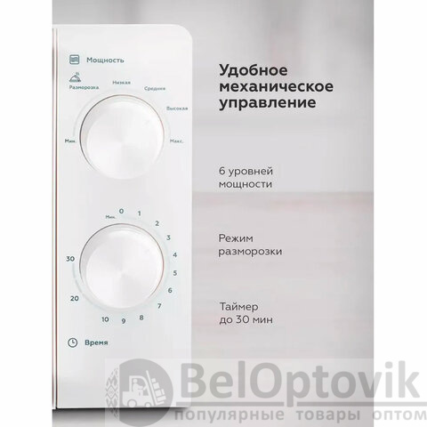 Микроволновая печь BQ (БИ-КЬЮ) MWO 20004SM/W, объем 20 л, мощность 700 Вт, механическое управление, белая, 86185120