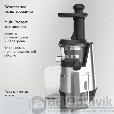 Шнековая соковыжималка BQ J2003 обеспечивает эффективный отжим соков из фруктов, овощей, ягод, корнеплодов и зелени с сохранением большей части фитонутриентов.