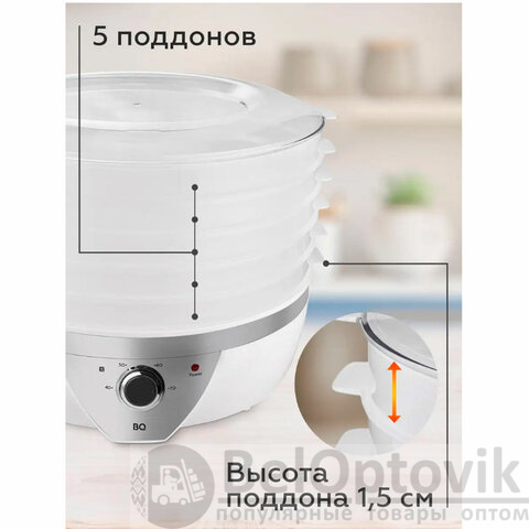 Сушилка для овощей BQ (БИ-КЬЮ) FD1002, объём 7,5 л, 500 Вт, 5 поддонов, механическое управление, белая, 86196540