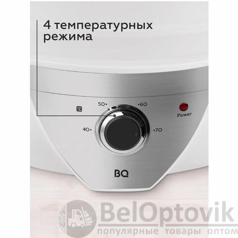 Сушилка BQ FD1002 равномерно распределяет тепло благодаря конвекции и механическому управлению. Имеет 4 режима работы с температурным диапазоном от 40 до 70 °С, чтобы подобрать оптимальный режим для разных видов овощей.