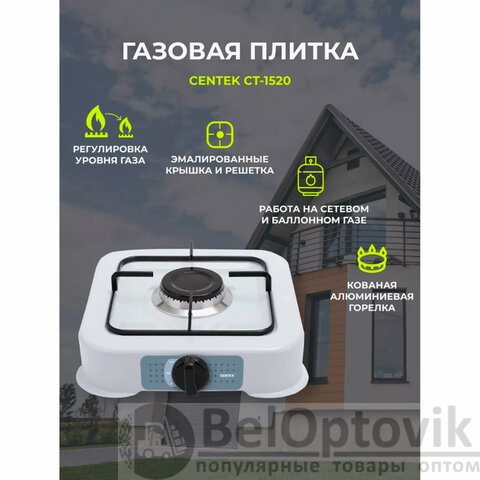 Газовая плита CENTEK CT-1520 подходит для приготовления пищи на даче, компактных кухнях или в походе. Отличается надежностью и удобством в эксплуатации.