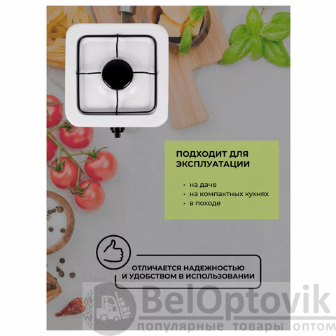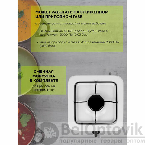 В комплект входит сменная форсунка для работы на природном (сетевом) газе, возможно подключение к баллонному газу. Она идеально подходит для небольших кухонь и может быть установлена на столе.