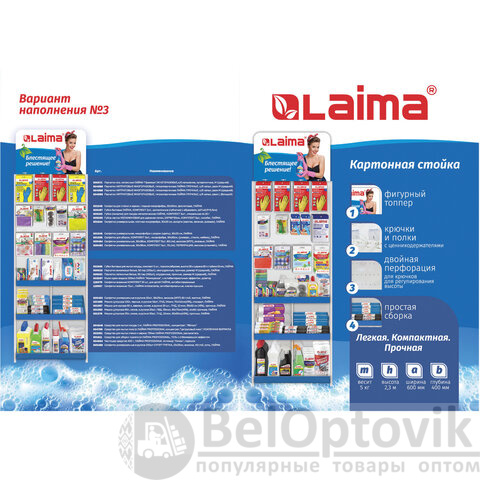 Стильная и вместительная фирменная стойка с фигурным топпером LAIMA позволит выгодно разместить продаваемый ассортимент так, чтобы клиенту было удобно выбрать нужный товар.