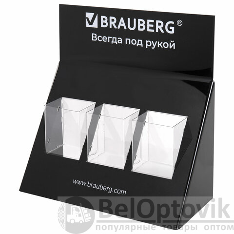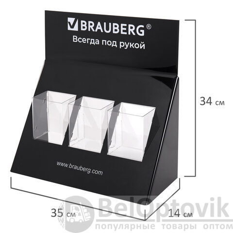 Брендированная подставка BRAUBERG обеспечивает эффективное размещение письменных принадлежностей на витрине.