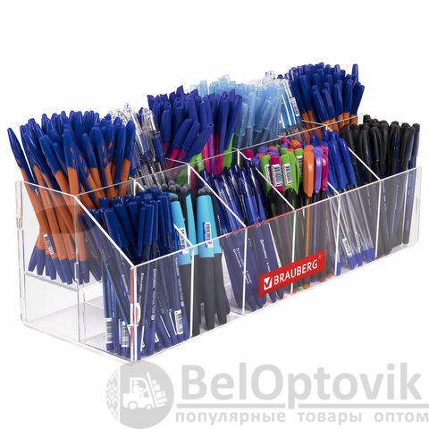 Брендированная подставка BRAUBERG обеспечивает эффективное размещение письменных принадлежностей на витрине.