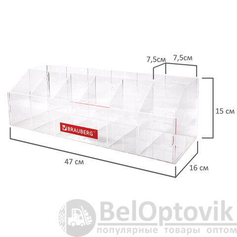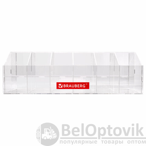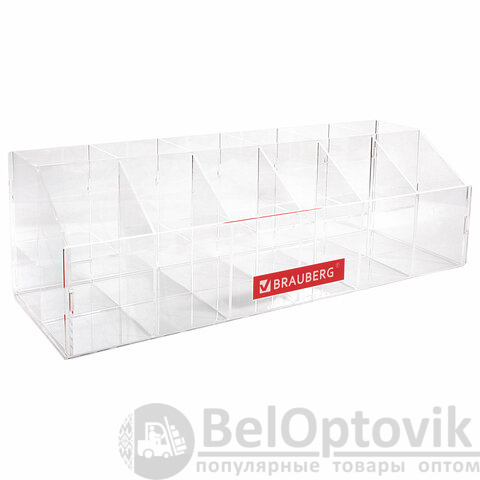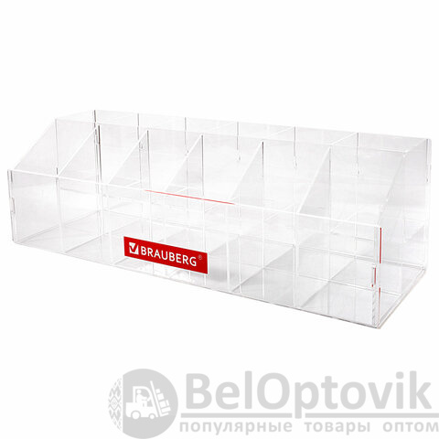 Подставка под письменные принадлежности BRAUBERG, 12 отделений, 15х47х16 см, оргстекло, 505924