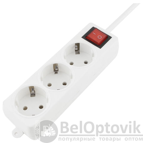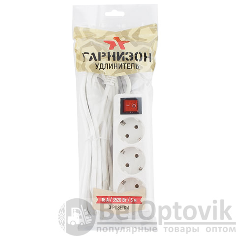 Удлинитель ГАРНИЗОН с выключателем, 3 розетки с заземлением, 3 м, 3х1 мм, 3500 Вт, белый, ELB-G3-W-3