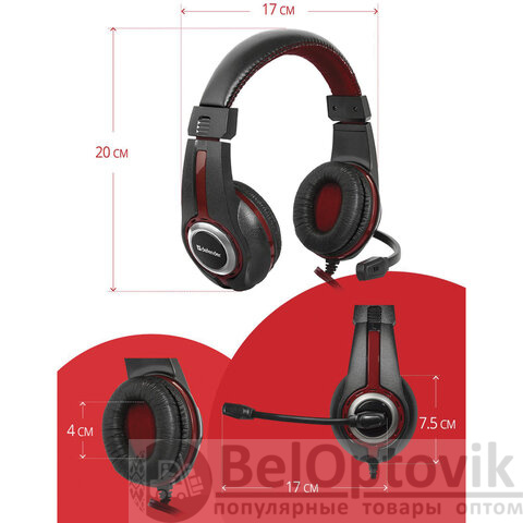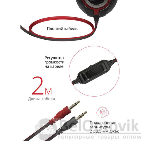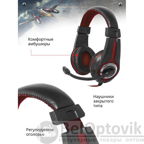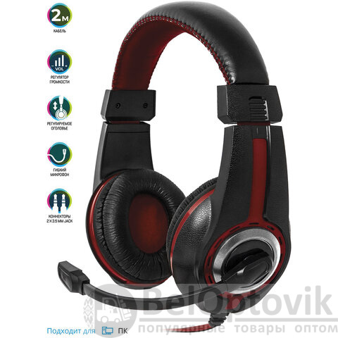 Наушники с микрофоном (гарнитура) DEFENDER Warhead G-185, проводные, 2 м, стерео, чёрно-красные, 64106