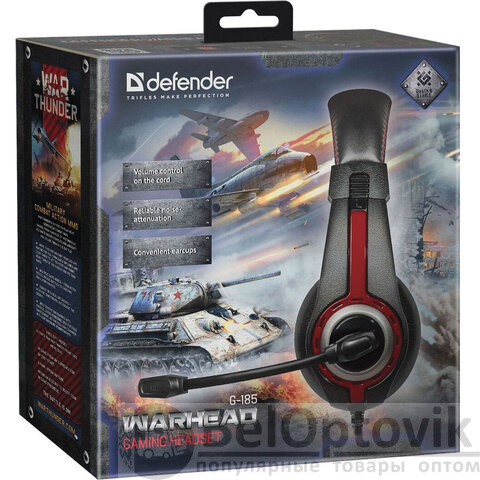 Игровая гарнитура DEFENDER Warhead G-185 - отличный выбор для геймера! В коробке находится подарок от War Thunder: танк Т-26 Первой гвардейской танковой бригады, 500 золотых орлов и 5 дней премиум-аккаунта в игре WARTHUNDER.
