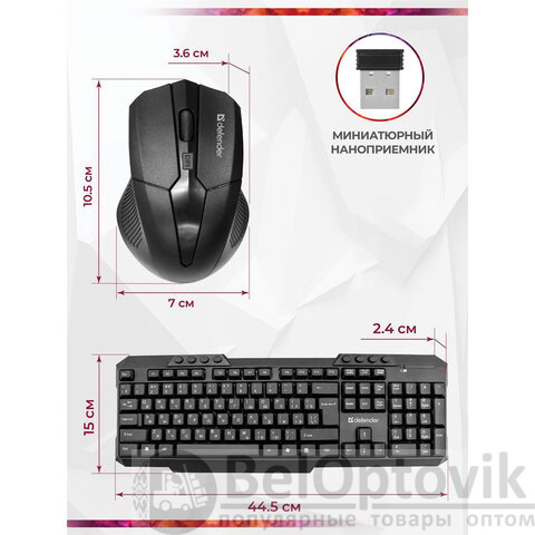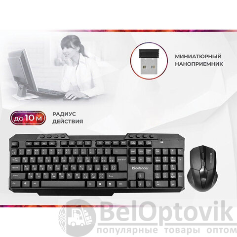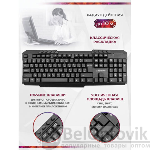 Набор беспроводной DEFENDER Jakarta C-805,клавиатура, мышь 3 кнопки+1 колесо-кнопка, черный, 45805