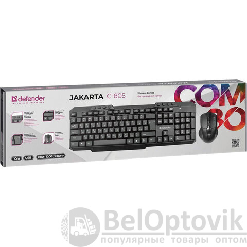 DEFENDER Jakarta C-805 - беспроводной набор с радиусом действия до 10 метров легкий и простой в установке, для работы не нужны драйверы. Удобное расположение мультимедийных клавиш и симметричная форма мыши позволят комфортно выполнять нужные задачи.