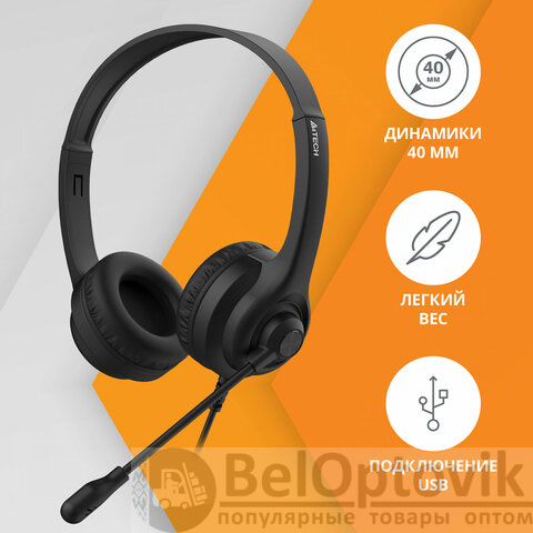 Наушники с микрофоном (гарнитура) A4TECH HU-8, проводные, 2 м, USB, черные, 1874958