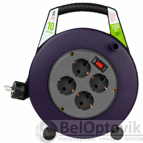 Удлинитель на катушке ЭРА BPx-4e, 4 розетки с заземлением, с выключателем, 10 м, 3x0,75 мм, 1300 Вт, 4e-3x0,75-10m