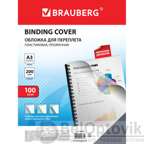 Пластиковые обложки BRAUBERG придадут документам эстетичный внешний вид и защитят от повреждений. Предназначены для переплета документов брошюровщиком с помощью пластиковых и металлических пружин.