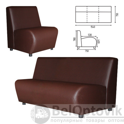 Диван мягкий трехместный "Клауд", "V-600", 1540х750х780 мм, без подлокотников, экокожа, коричневый