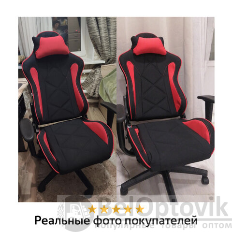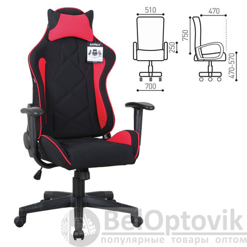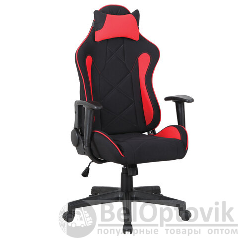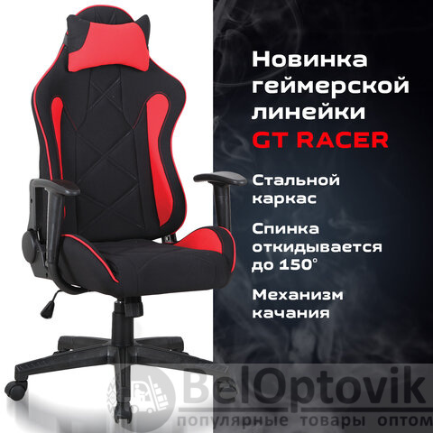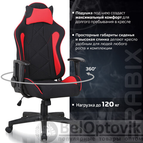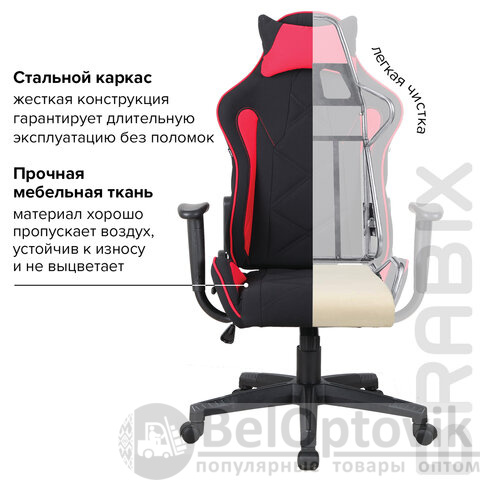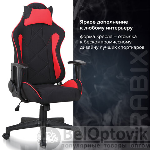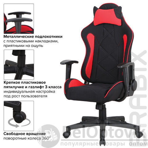Кресло компьютерное BRABIX "GT Racer GM-101", подушка, ткань, черное/красное, 531820