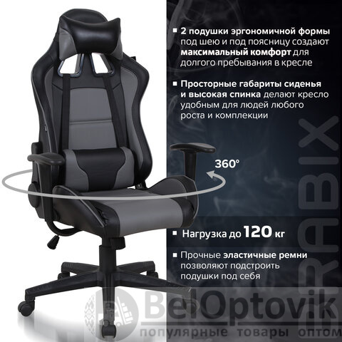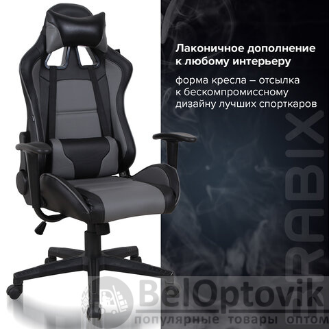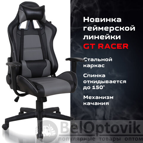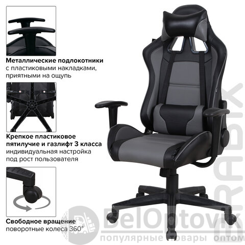 Кресло компьютерное BRABIX "GT Racer GM-100", две подушки, экокожа, черное/серое, 531926