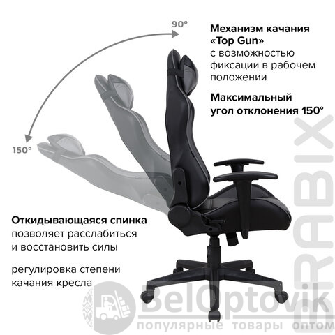 Модель оснащена механизмом качания «топ-ган» с регулировкой под вес пользователя и возможностью фиксации в рабочем положении.