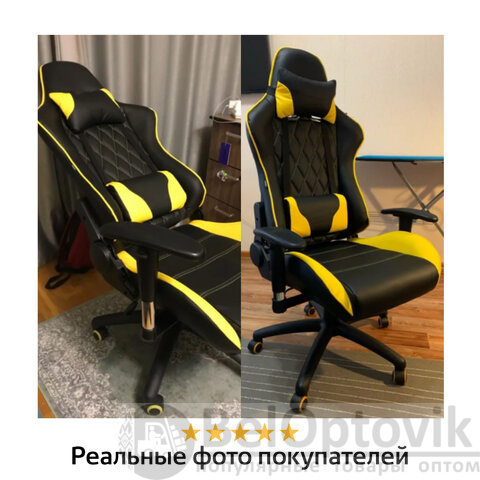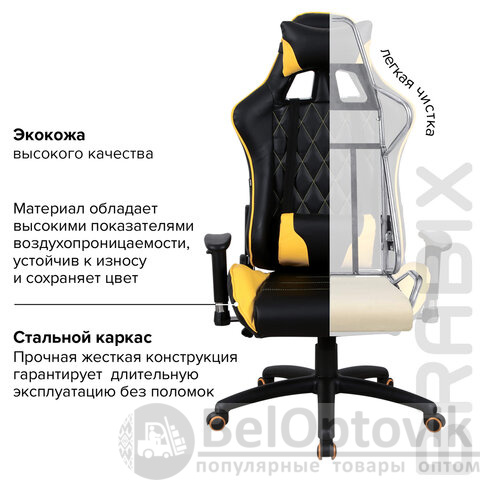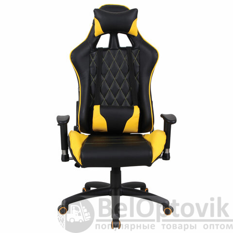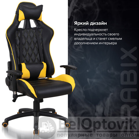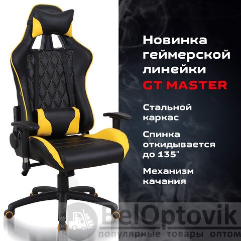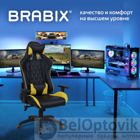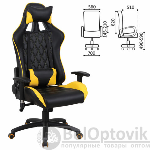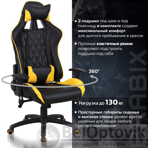 Кресло компьютерное BRABIX "GT Master GM-110", две подушки, экокожа, черное/желтое, 531927