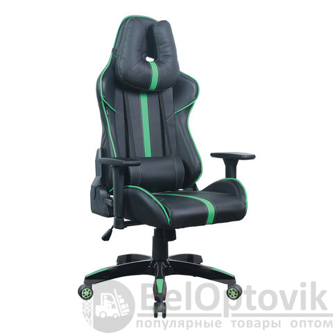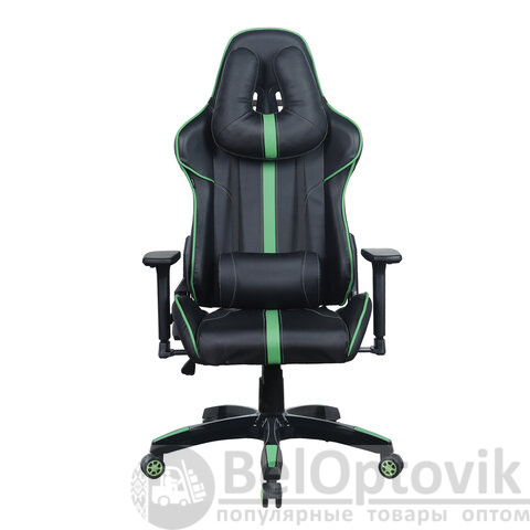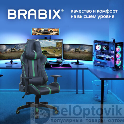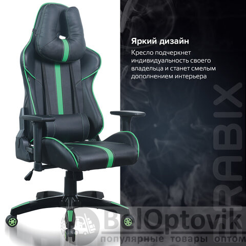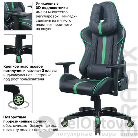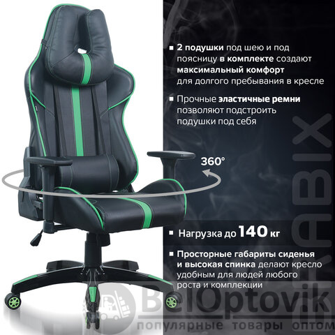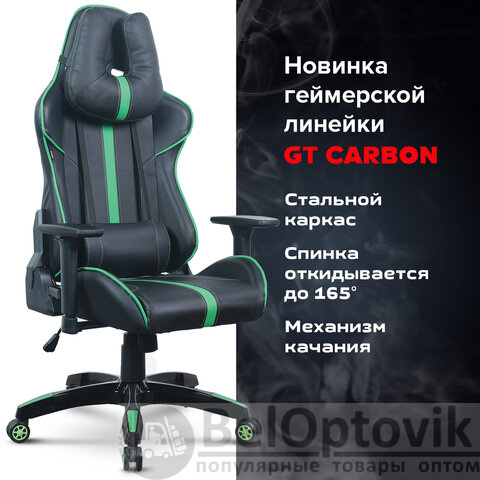 Кресло компьютерное BRABIX "GT Carbon GM-120", две подушки, экокожа, черное/зеленое, 531929