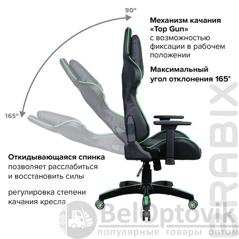 Модель оснащена механизмом качания «топ-ган» с регулировкой под вес пользователя и возможностью фиксации в рабочем положении.