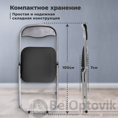 Практичный и удобный складной стул предназначен для оснащения офисов, поликлиник, мест ожидания, учебных заведений, дома и дачи. Прочная рама и износостойкая обивочная ткань обеспечат долговечность эксплуатации. В сложенном виде не занимает много места.