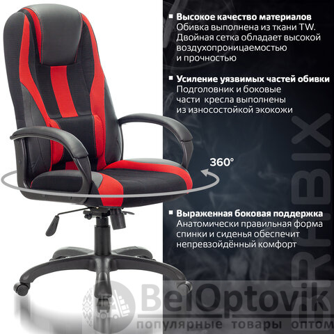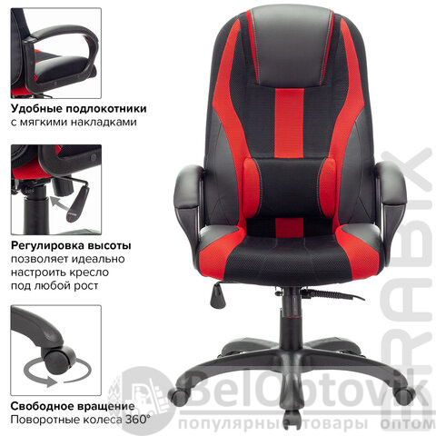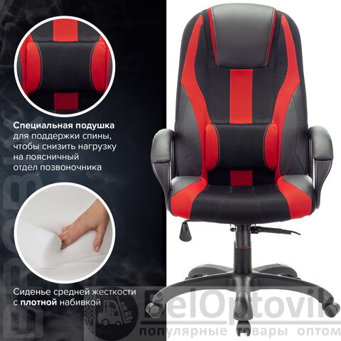 Кресло компьютерное BRABIX PREMIUM "Rapid GM-102", экокожа/ткань, черное/красное, 532107