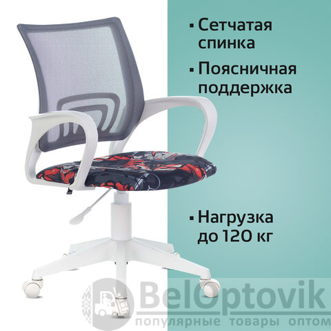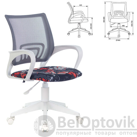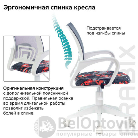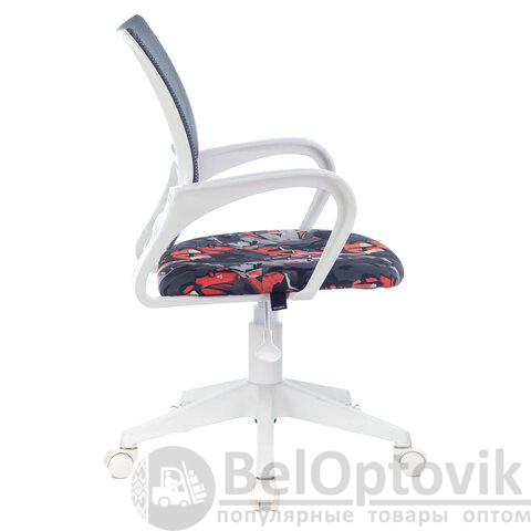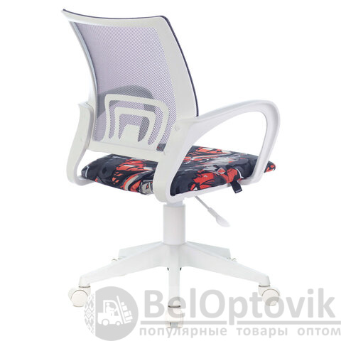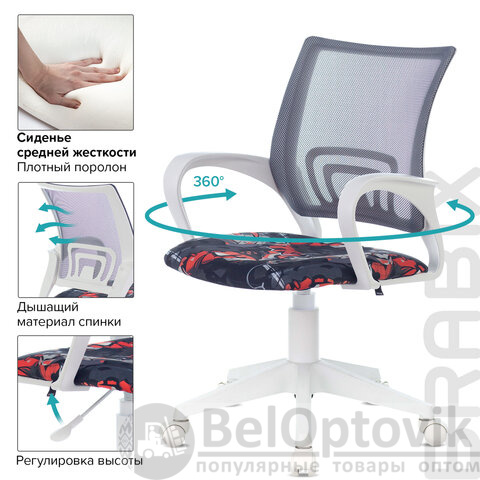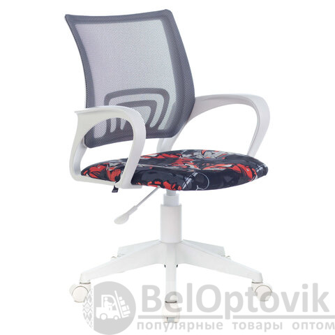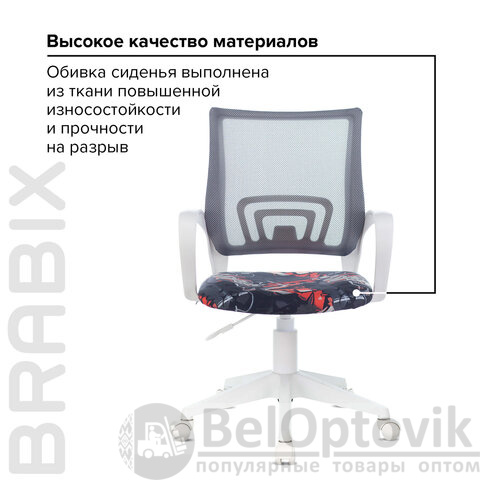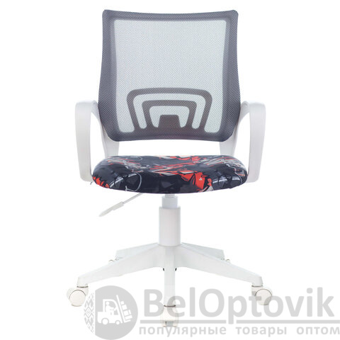 Кресло BRABIX "Fly MG-396W", с подлокотниками, пластик белый, сетка, серое с рисунком "Graffity", 532404, MG-396W_532404