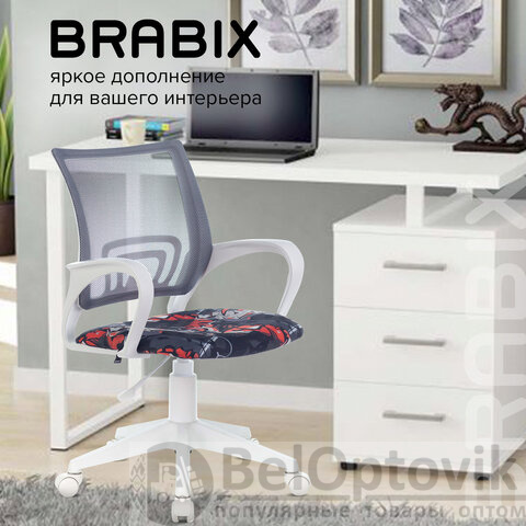 BRABIX "Fly MG-396" - доступное, качественное кресло с эргономичной сетчатой спинкой на белом пластике. Прекрасный вариант для повседневной работы в офисе и дома.
