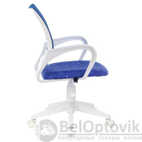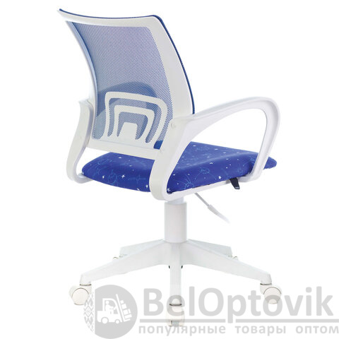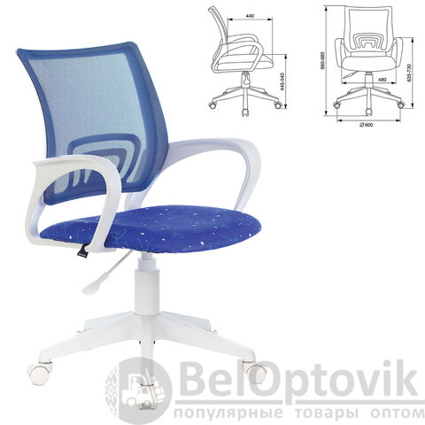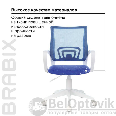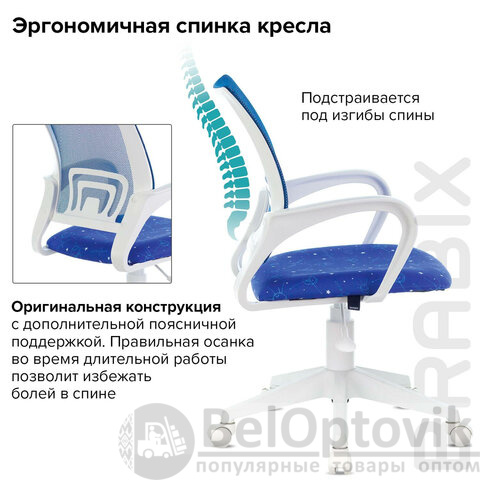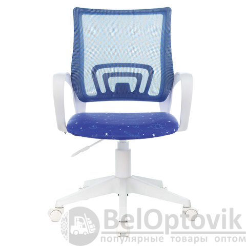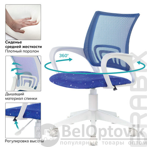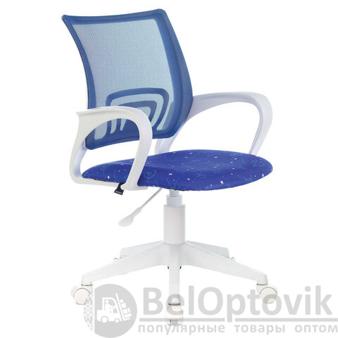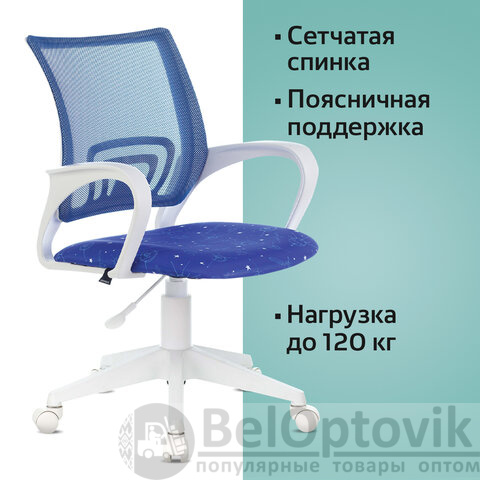 Кресло BRABIX "Fly MG-396W", с подлокотниками, пластик белый, сетка, темно-синее с рисунком "Space", 532405, MG-396W_532405