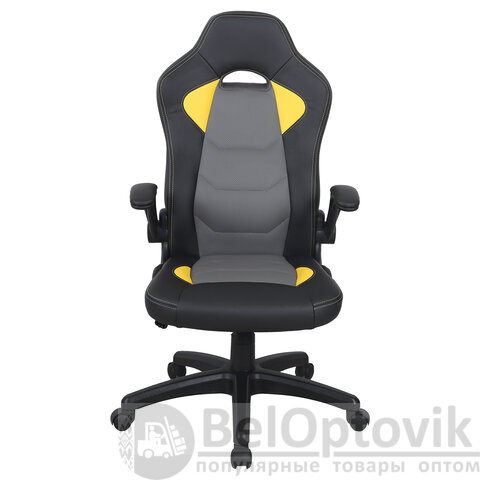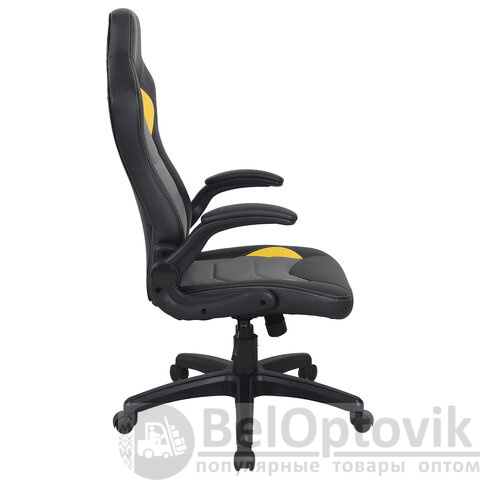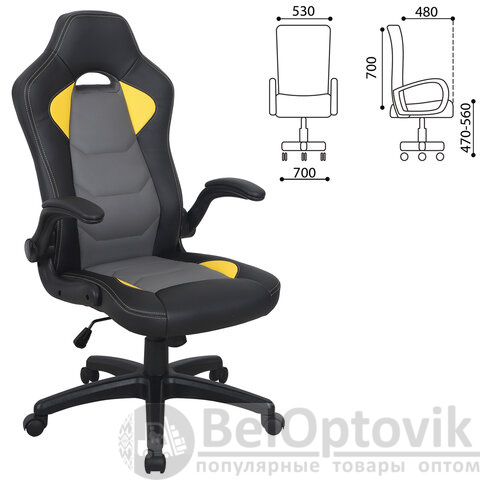 Кресло компьютерное BRABIX "Skill GM-005", откидные подлокотники, экокожа, черное/желтое, 532494
