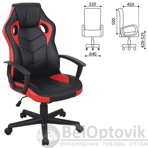 Кресло компьютерное BRABIX "Fighter GM-008", экокожа, черное/красное, 532506