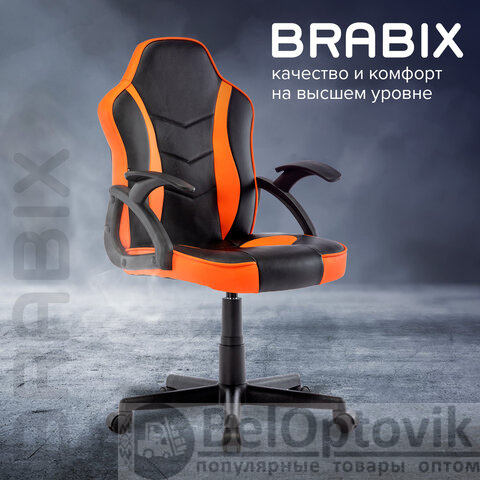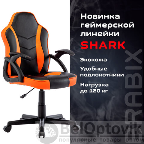 Кресло компьютерное BRABIX "Shark GM-203", экокожа, черное/оранжевое, 532513