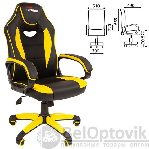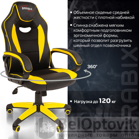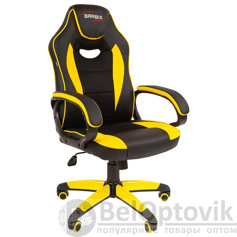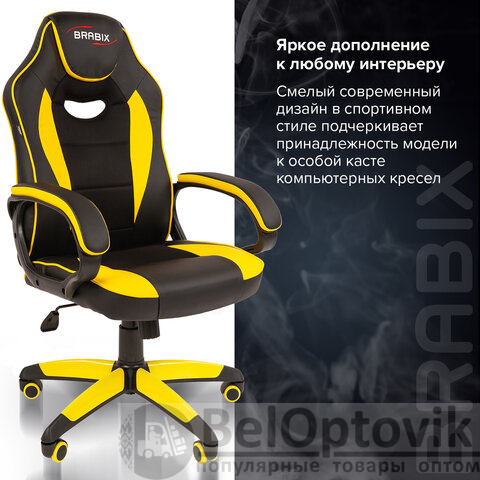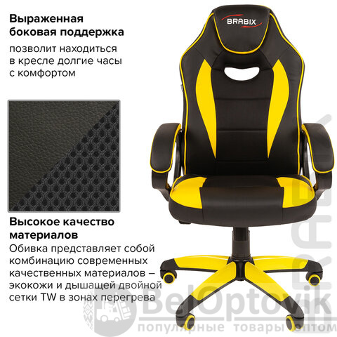 Кресло компьютерное BRABIX "Blaze GM-162", TW/экокожа, черное/желтое, 532579, 7083507