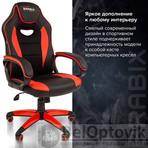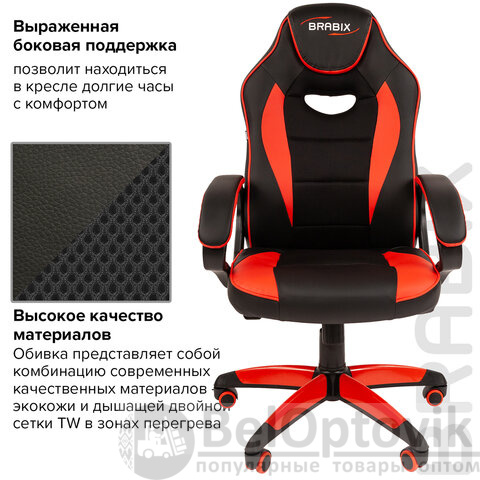 Кресло компьютерное BRABIX "Blaze GM-162", TW/экокожа, черное/красное, 532580, 7083508
