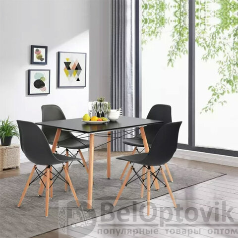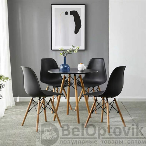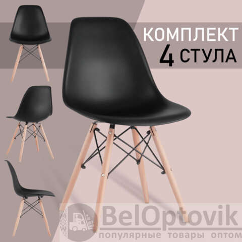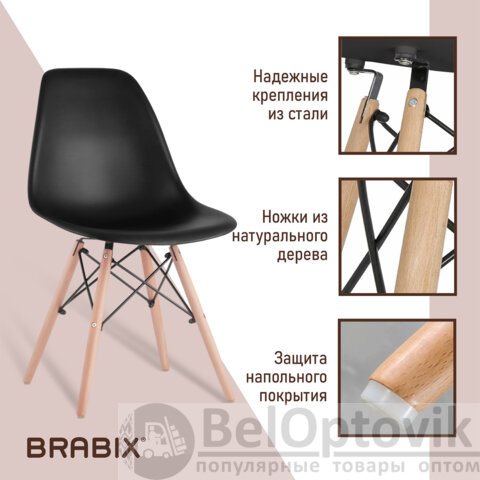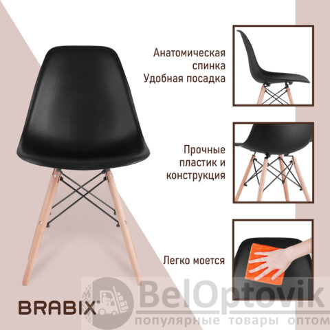 Стулья BRABIX "Eames CF-010", КОМПЛЕКТ 4 шт., пластик черный, опоры дерево/металл, 532631, 2033A