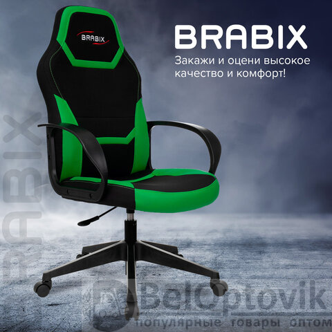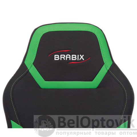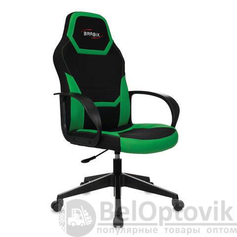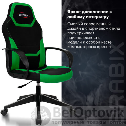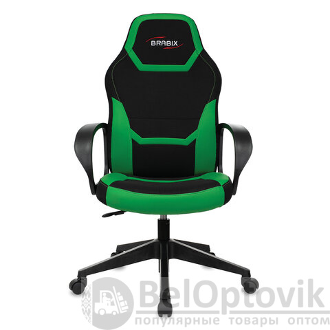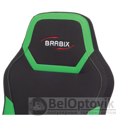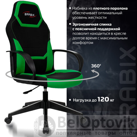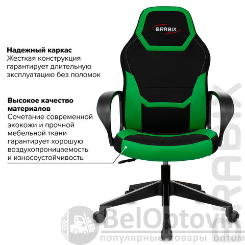 Кресло компьютерное BRABIX "Alpha GM-018", ткань/экокожа, черное/зеленое, 532639, GM-018_532639