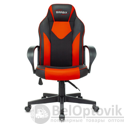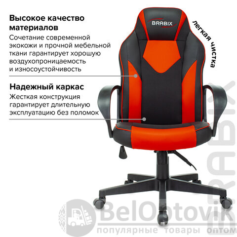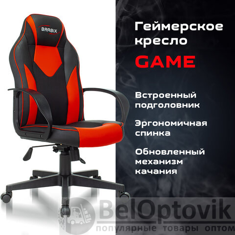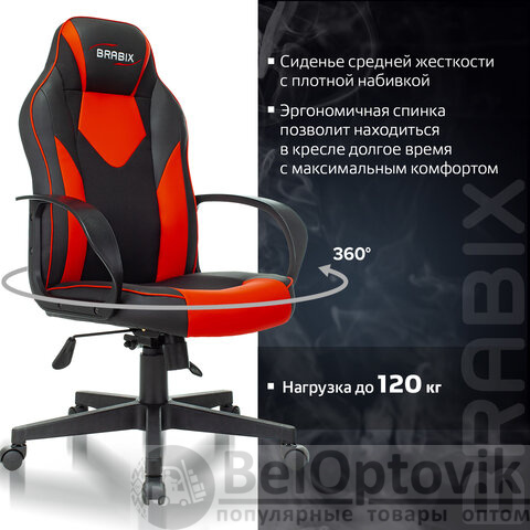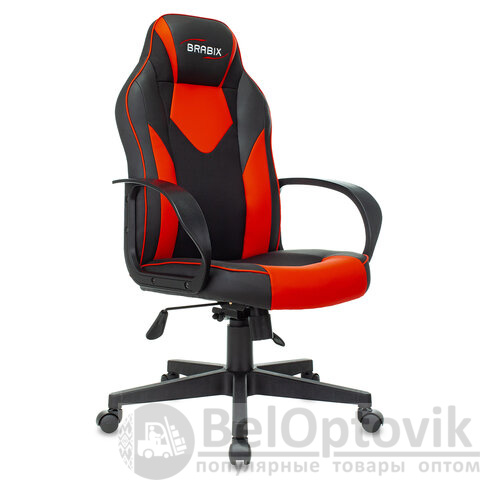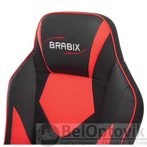 Кресло компьютерное BRABIX "Game GM-017", экокожа/ткань, черное/красное, 532642, GM-017_532642