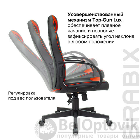 На кресло установлен усовершенствованный механизм "Top-Gun Lux", который обеспечивает плавное качание, а главное, позволяет зафиксировать угол наклона в любом положении. Плавность качания можно регулировать под вес конкретного пользователя. Данный тип механизма обеспечивает максимальную устойчивость, повышенный комфорт и, как следствие, увеличивает срок эксплуатации всего кресла.